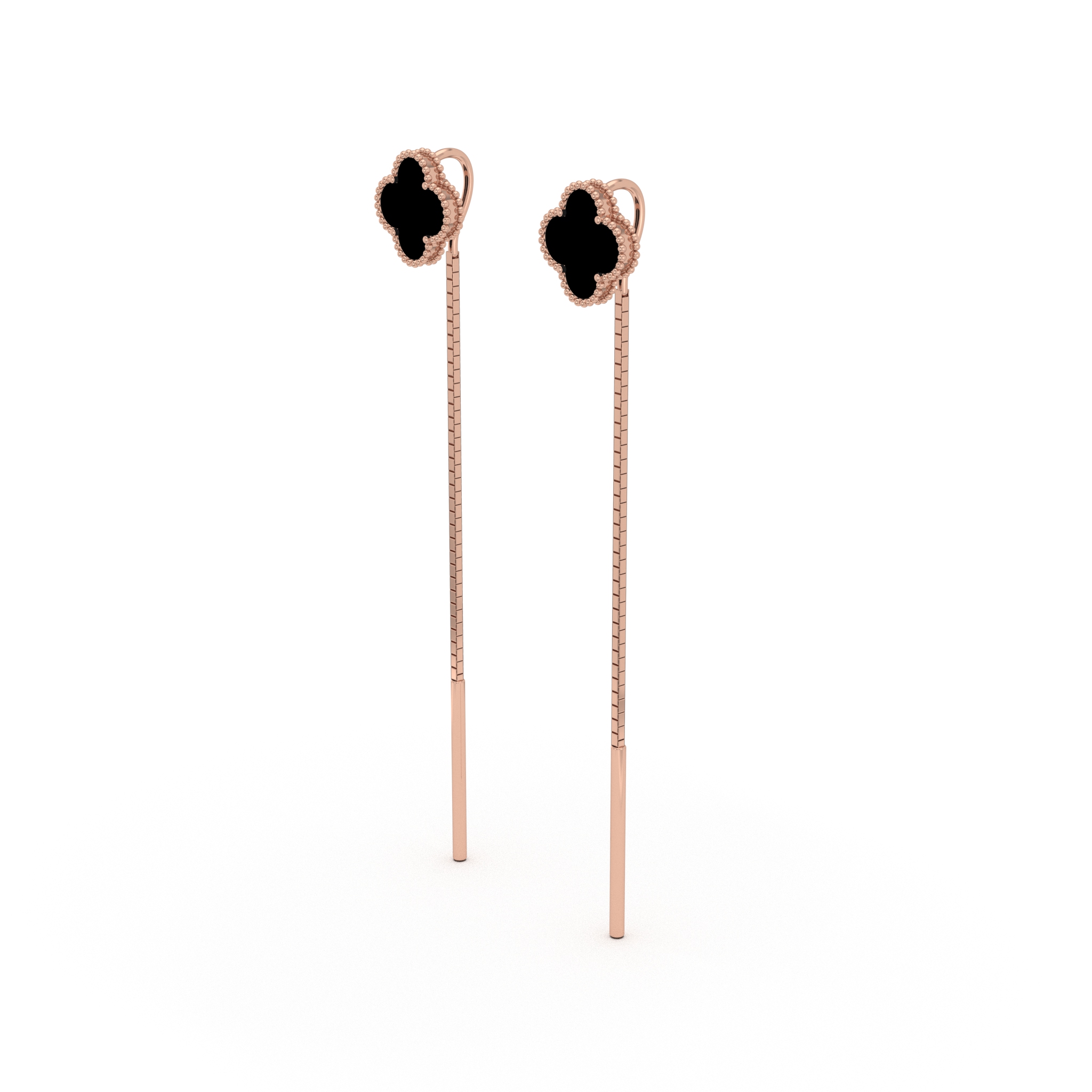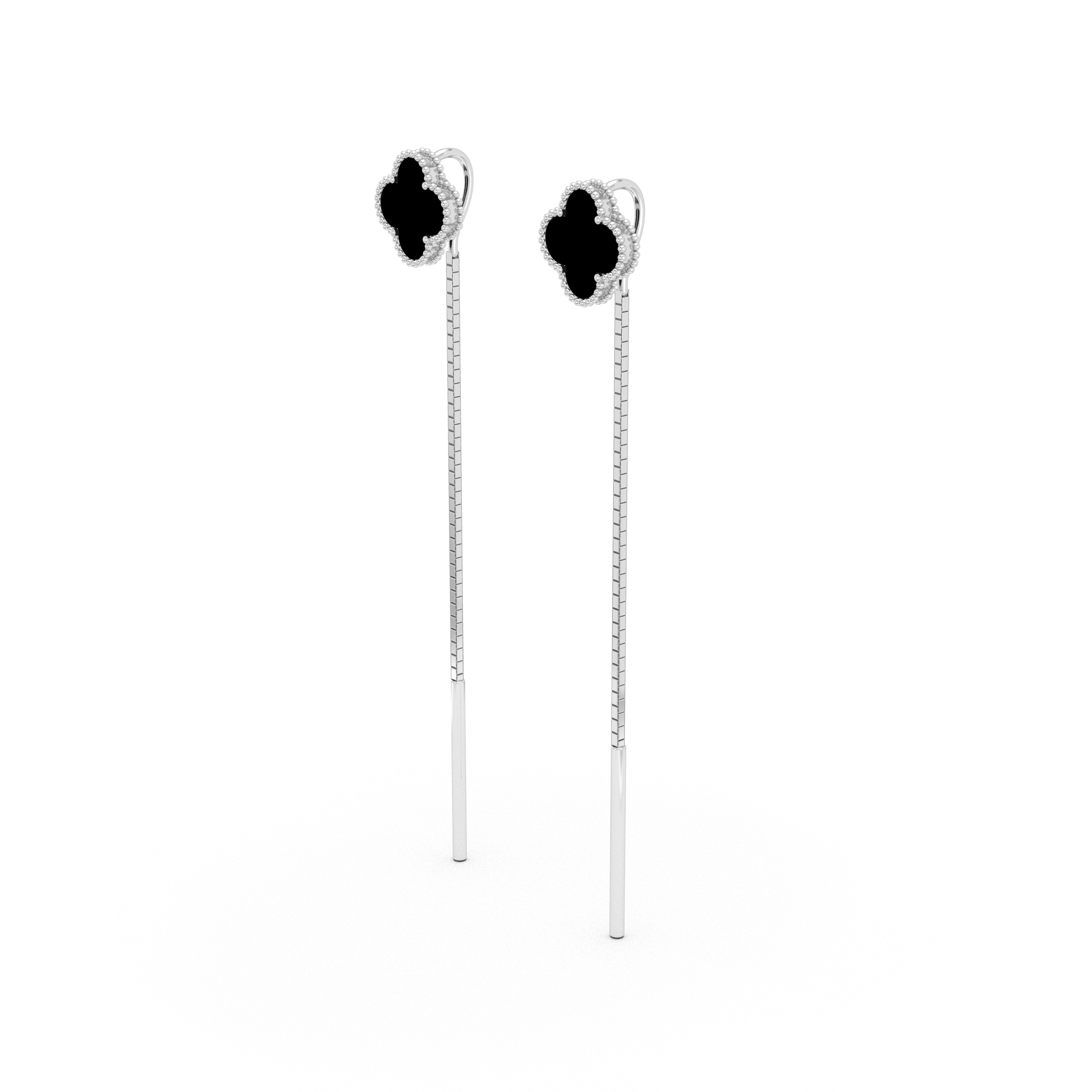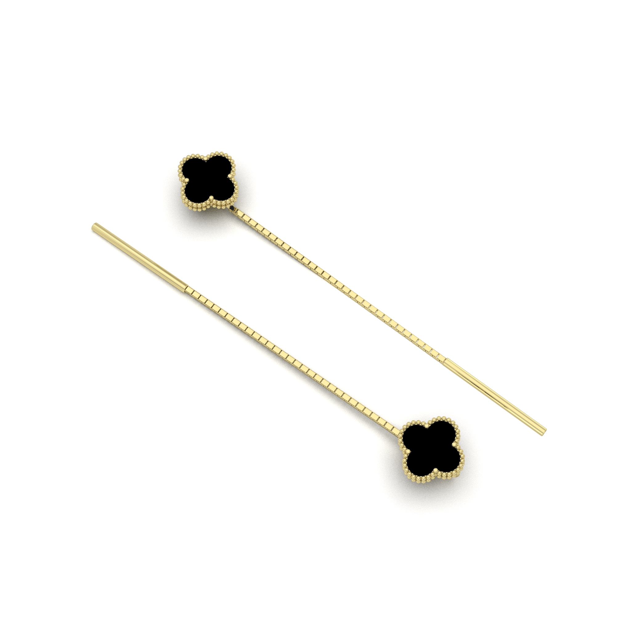 Black Clover Threader Earrings Elegant Minimalist Jewelry for Everyday Wear