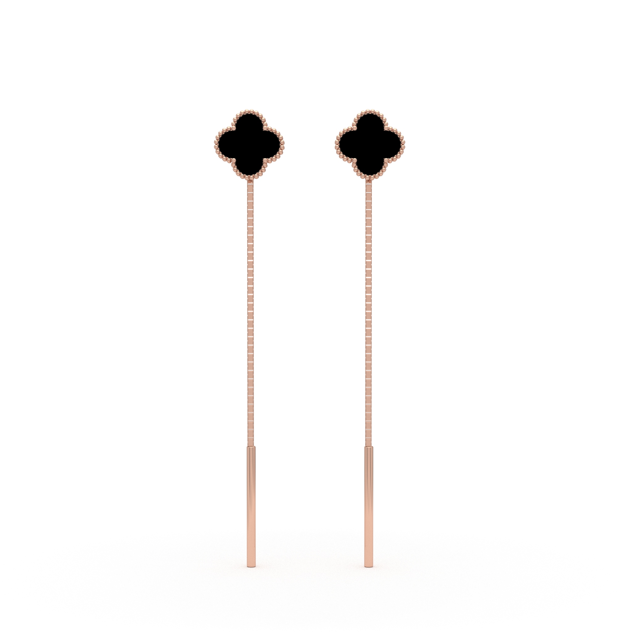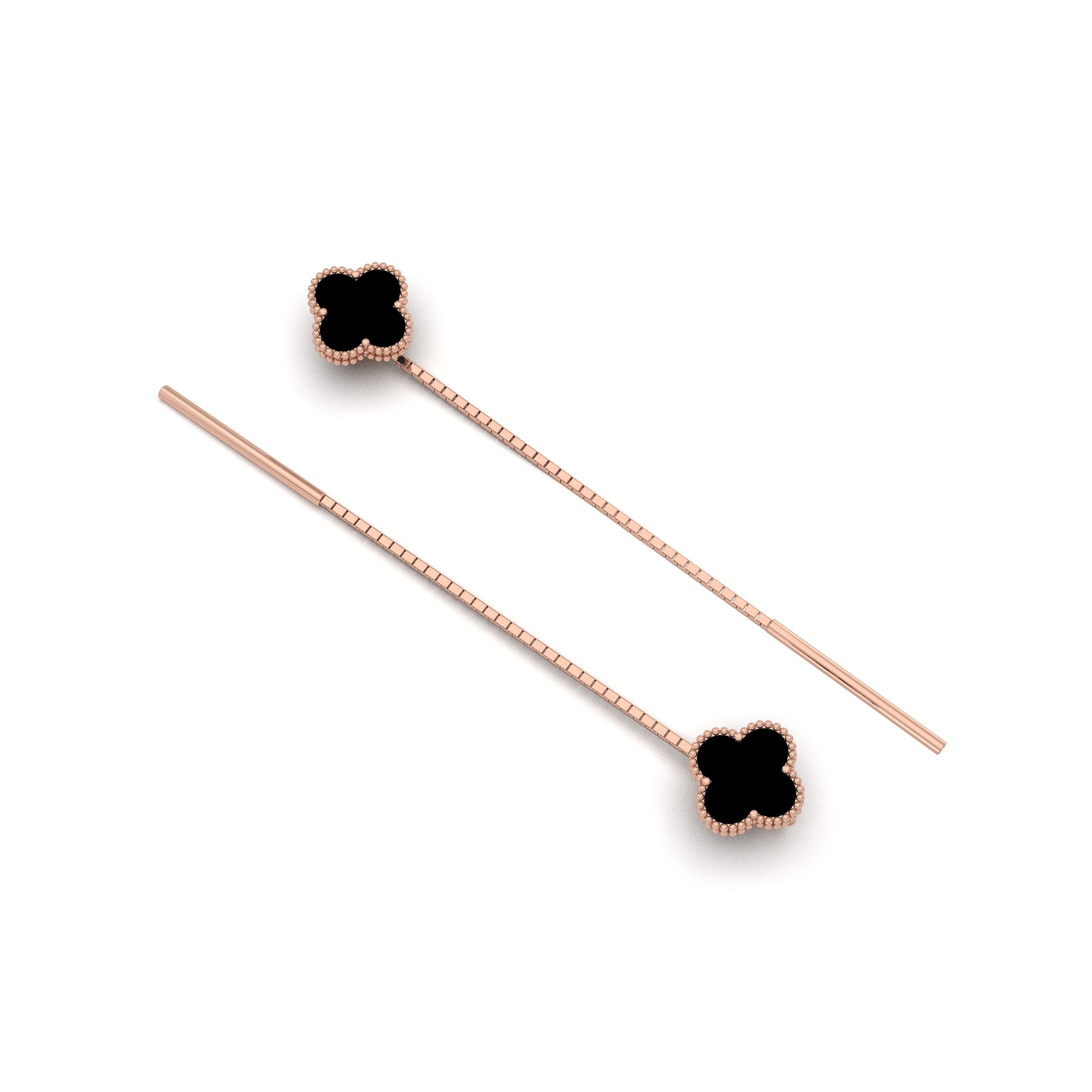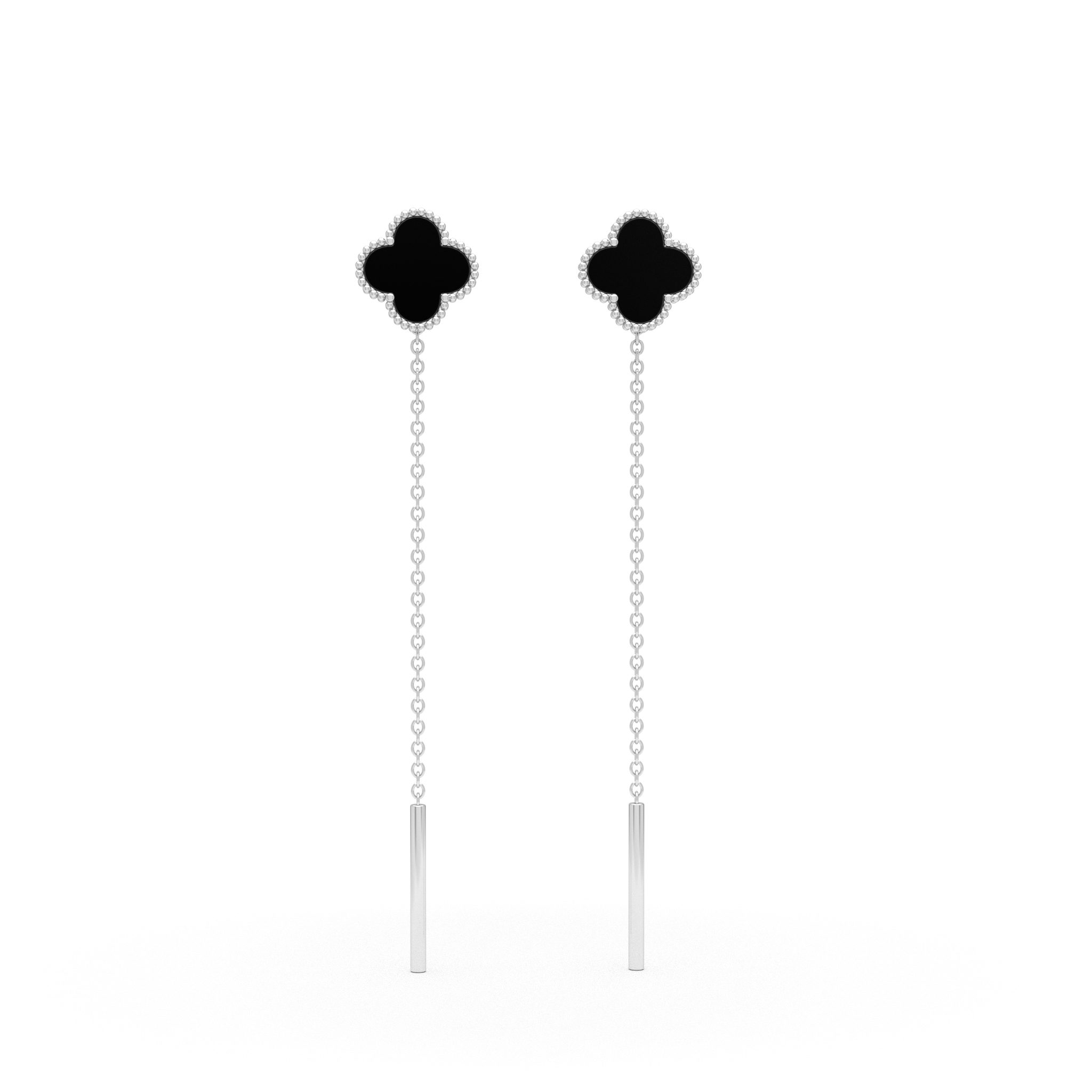 Black Clover Threader Earrings Elegant Minimalist Jewelry for Everyday Wear