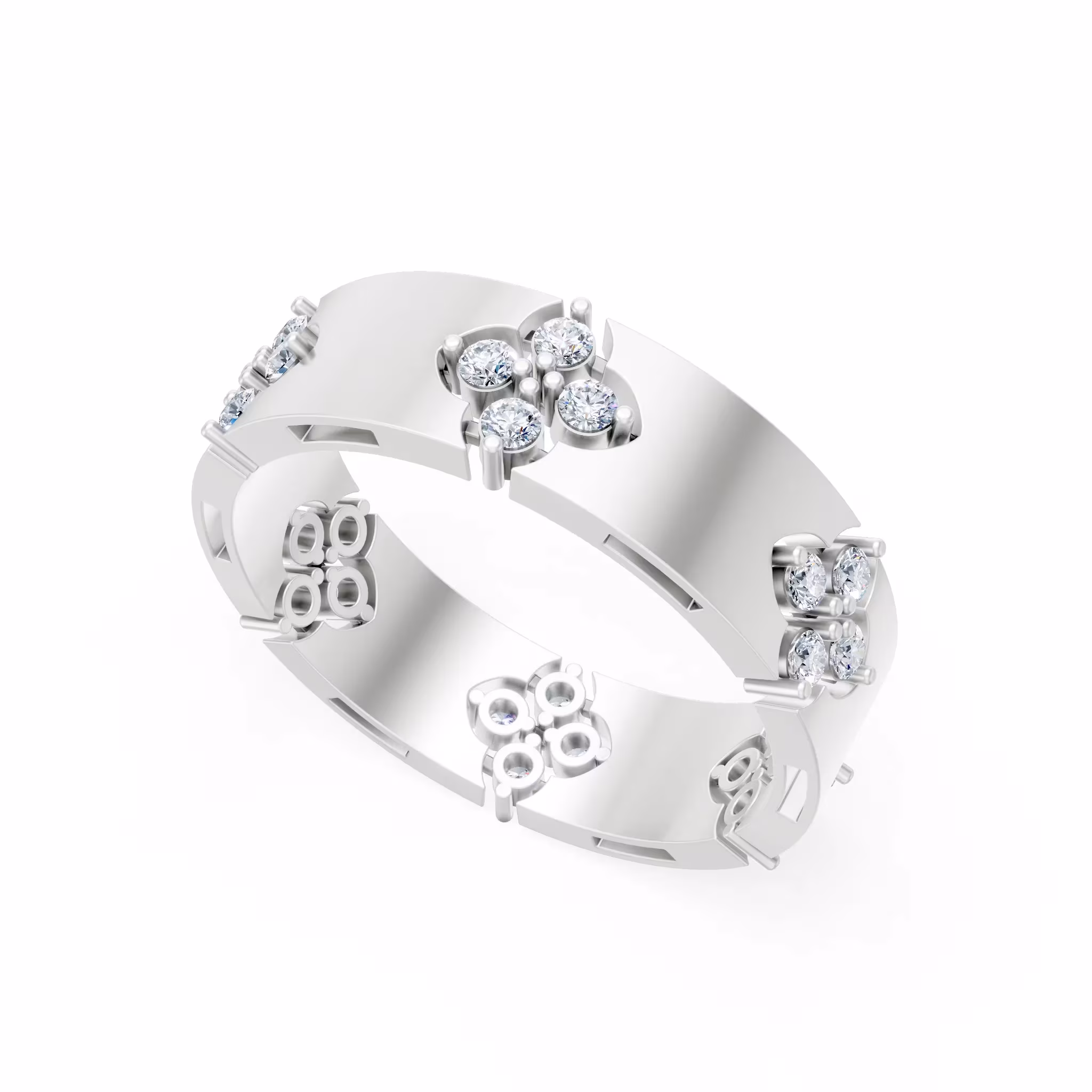 Design: Architectural Clover Band Ring with interlocking rectangular links