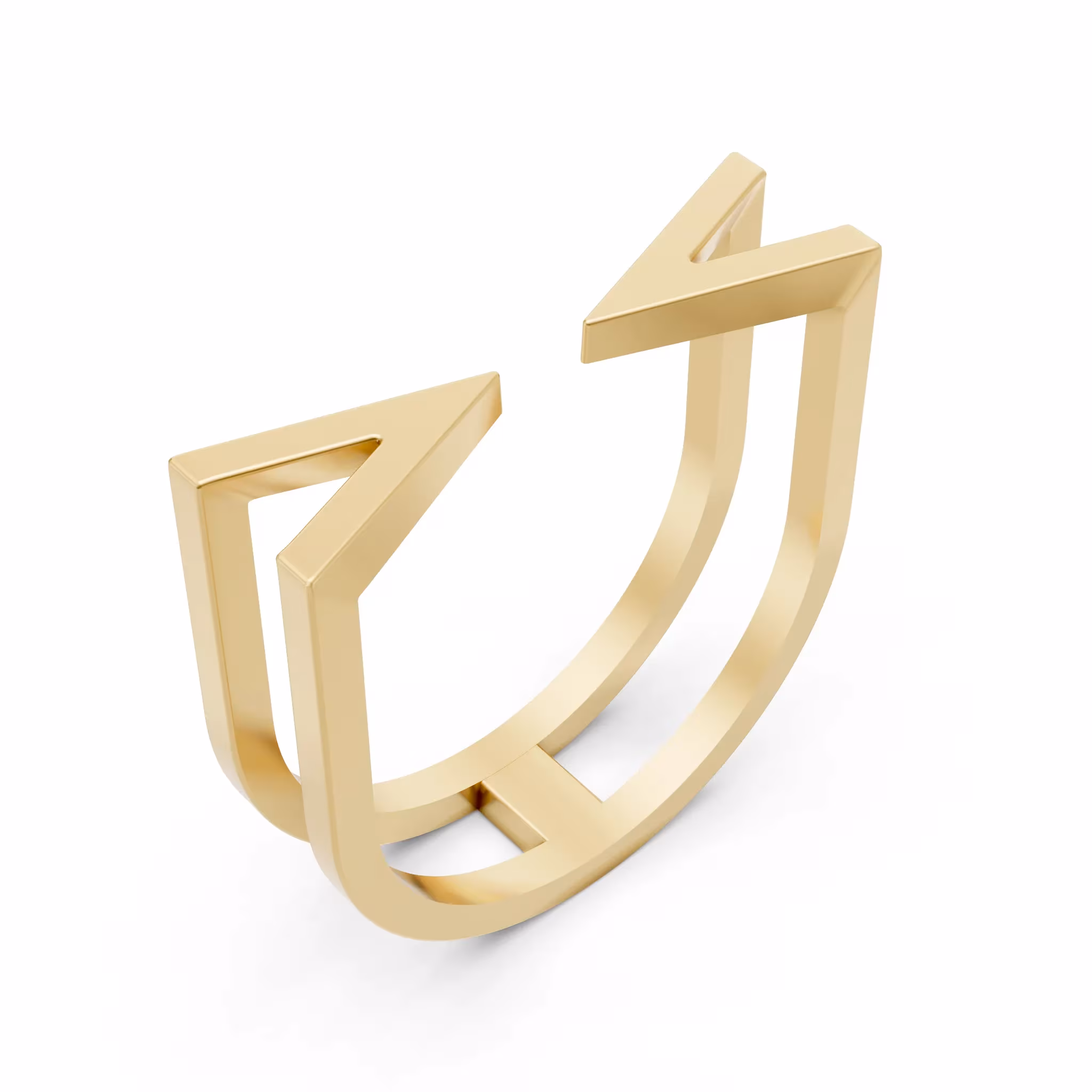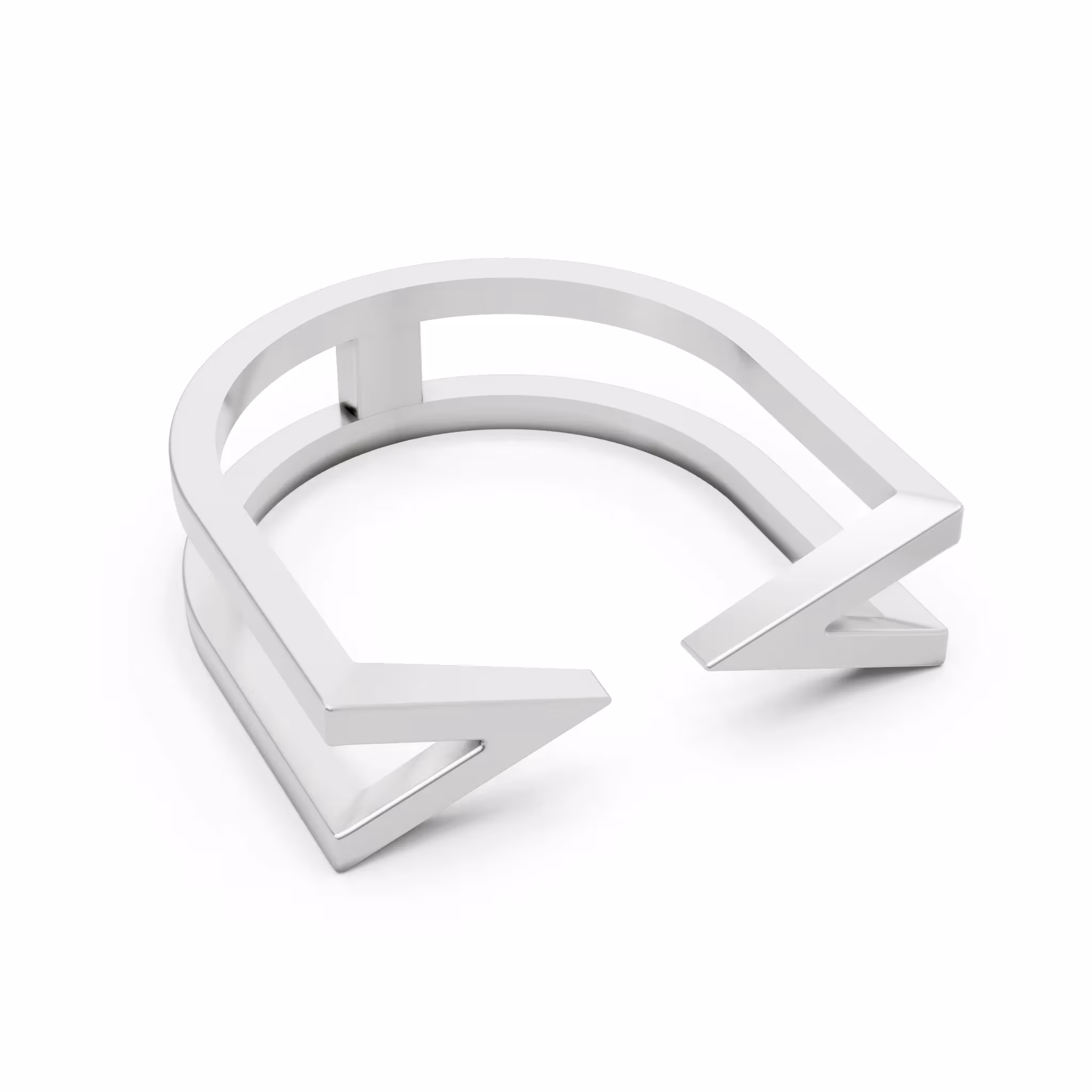 Design: Sleek architectural Double Band Ring with an open geometric front
