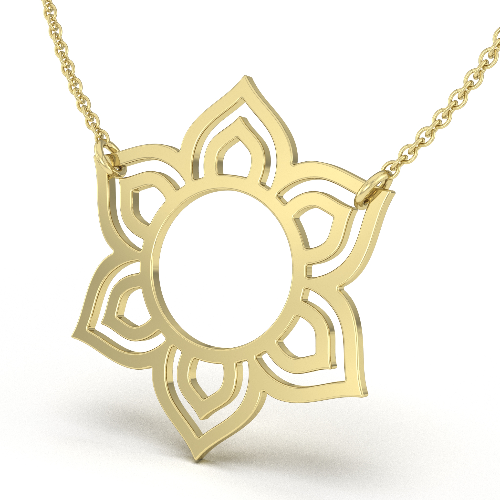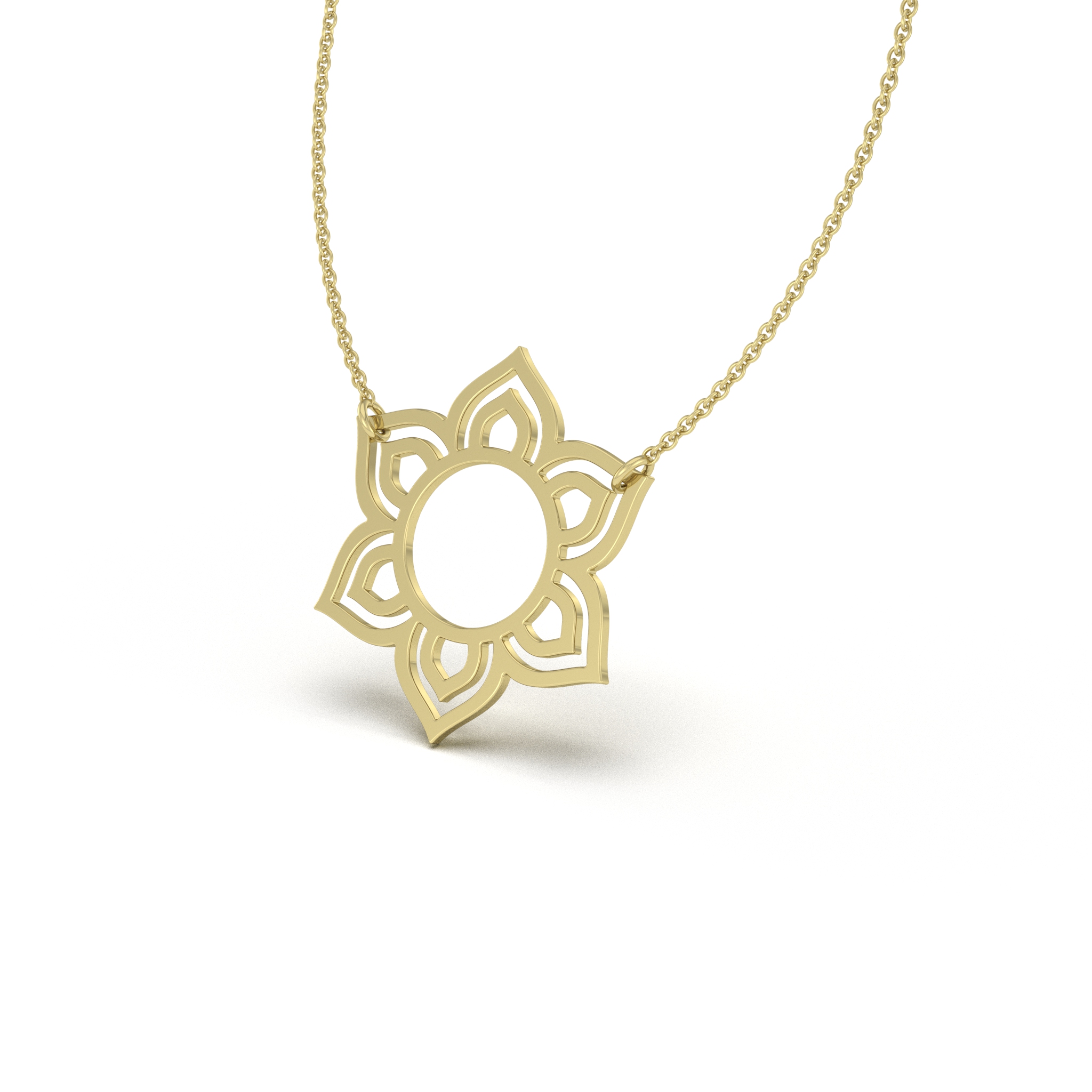 Add a touch of timeless charm to your collection with our Mandala flower Pendant. Inspired by fluid architectural and botanical motifs, this delicate necklace features an intricate hexagonal lotus silhouette with a brilliant high-polish finish. A perfect blend of old-world craft and modern minimalism, this Mandala flower Pendant is designed to be worn every day. This Mandala flower Pendant is the ideal gift for someone special or a radiant addition to your own jewelry stack.