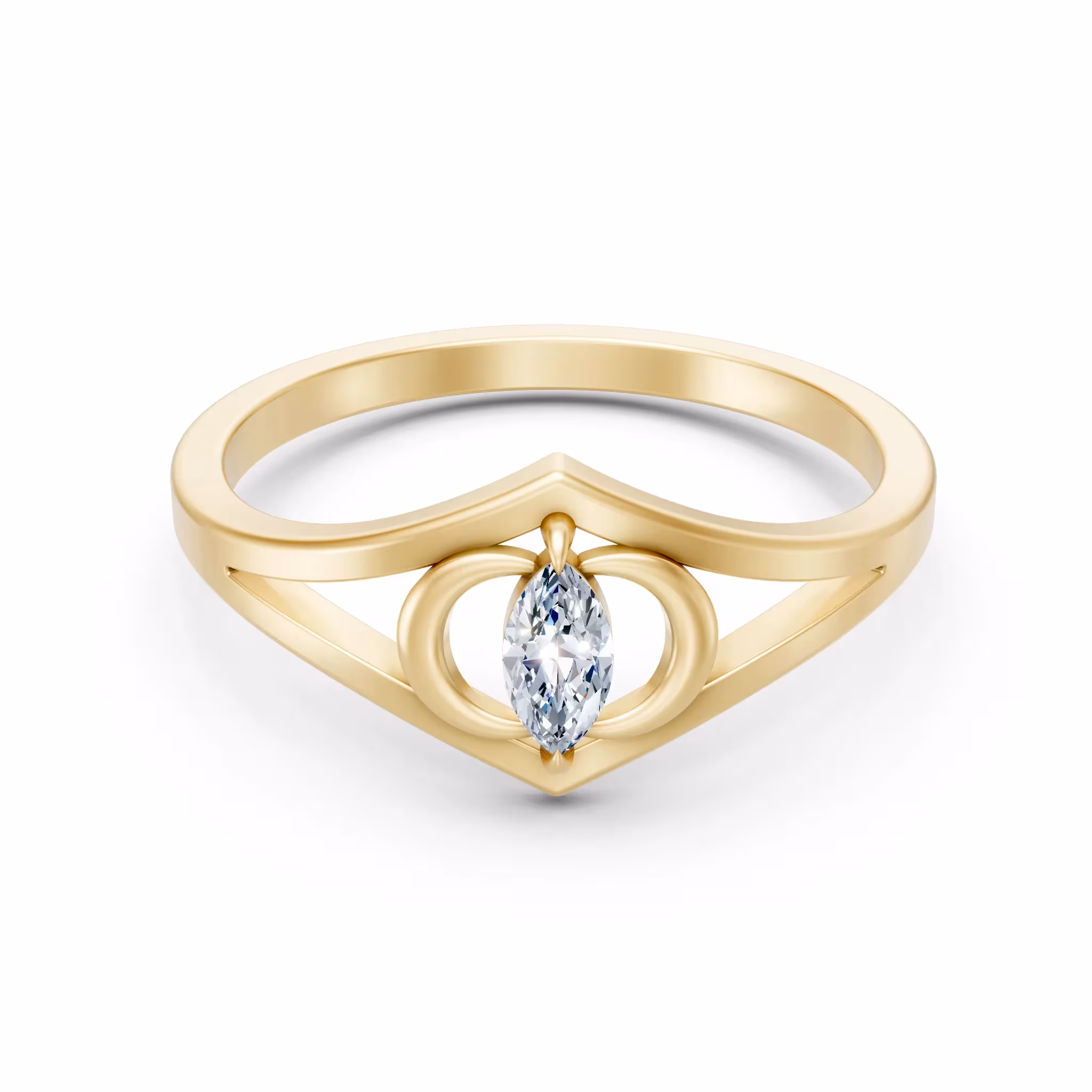 Make a bold, structural statement with our Marquise Signet Ring. This modern masterpiece features a stunning marquise-cut diamond suspended within a sharp, architectural kite-shaped frame. Designed for those who love clean lines and edgy sophistication, this Marquisse Signet Ring features a unique split-shank band for added visual depth. Every Marquisse Signet Ring is crafted to be a standout signature piece in any modern jewelry collection.