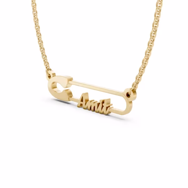 Add a touch of timeless charm with our Personalized Safety Pin Necklace, inspired by modern industrial and sentimental design. Crafted in premium 18k Gold or Silver, it features a sleek safety pin silhouette custom-crafted with your chosen name in elegant script. A refined blend of personal meaning and modern minimalism, designed for everyday wear and effortless styling.