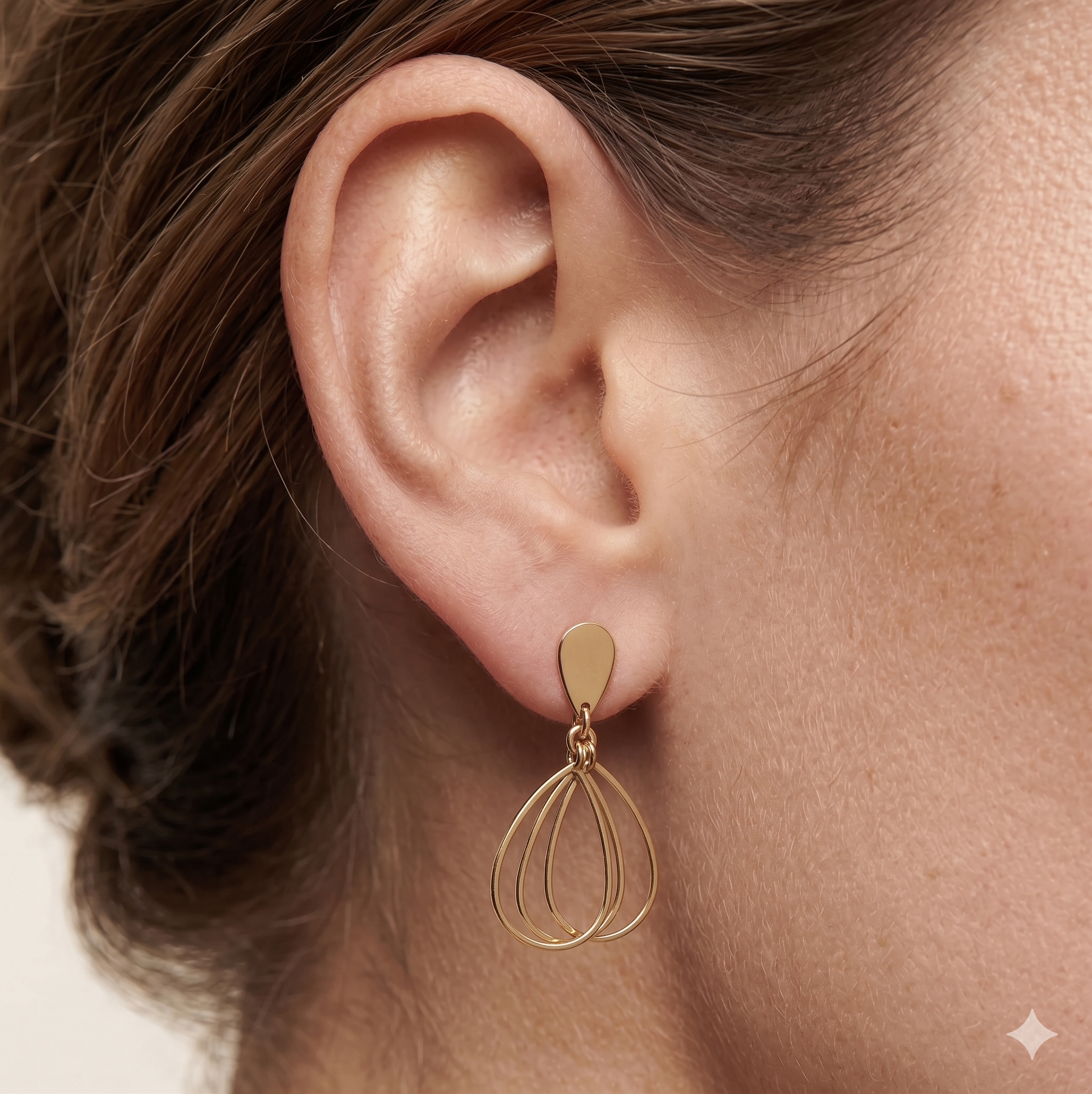 Add a touch of timeless charm to your collection with our Triple Teardrop Earrings. Inspired by fluid architectural and organic motifs, these elegant studs feature three shimmering teardrop outlines suspended from a polished metal base. A perfect blend of old-world craft and modern minimalism, this design is created for effortless daily wear. This piece serves as the ideal gift for someone special or a radiant addition to your own jewelry stack. Every pair is crafted for enduring beauty and defines the pinnacle of modern luxury.